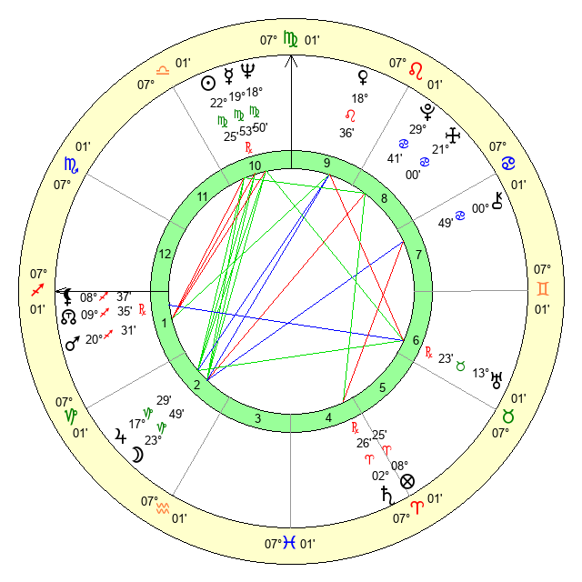 | Sun | 22 Virgo 25 | 23 Virgo 6 | 20 Sagittarius 16 |