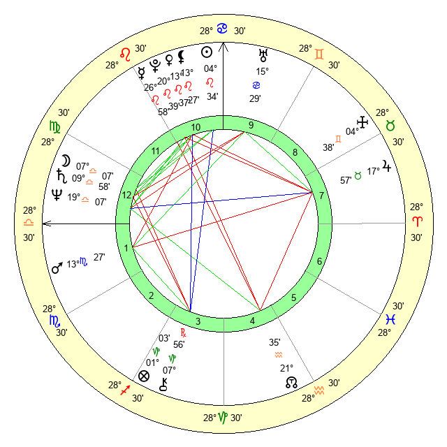 | Moon | 7 Libra 4 | 10 Virgo 48 | 21 Gemini 38 |