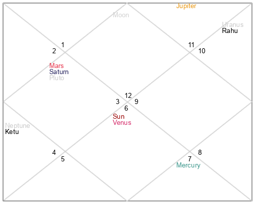 | Venus | 3 Libra 46 | 6 Virgo 20 | 20 Aquarius 55 |