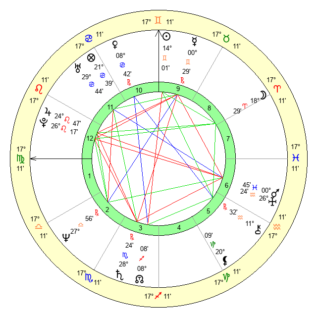 | Mercury | 0 Gemini 29 | 21 Gemini 7 | 11 Virgo 17 |