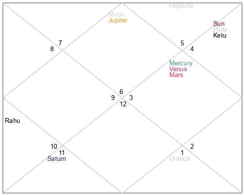 | Ketu | 11 Leo 3 | 20 Virgo 58 | 6 Leo 13 |