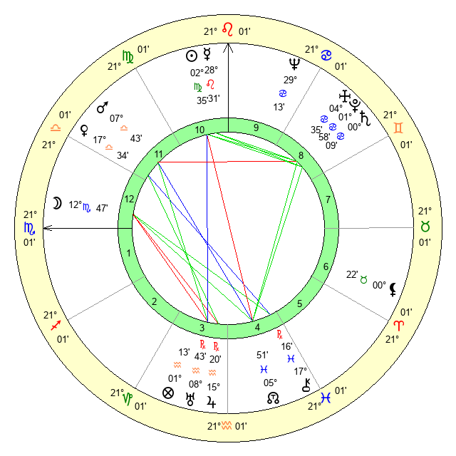 | Moon | 12 Scorpio 45 | 13 Libra 44 | 3 Sagittarius 28 |