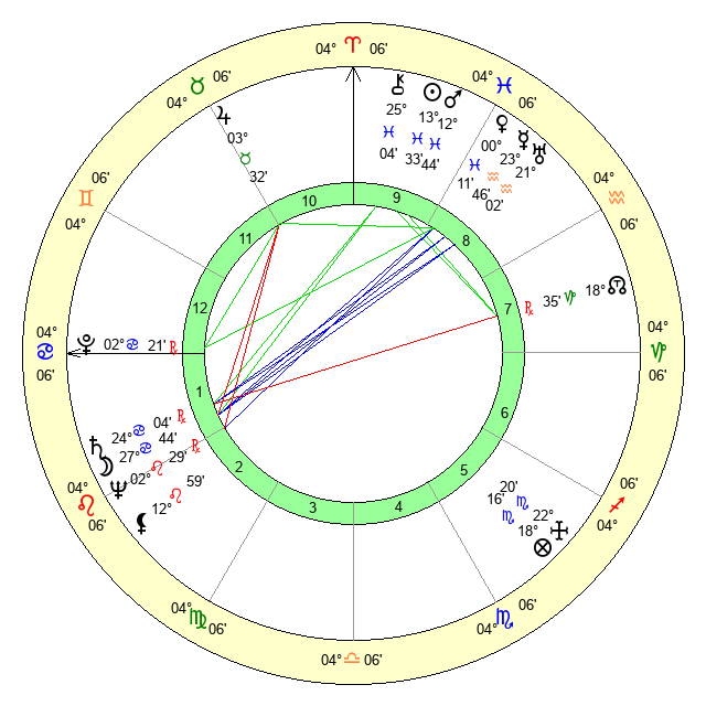 | Mars | 12 Pisces 45 | 17 Cancer 28 | 4 Gemini 9 |