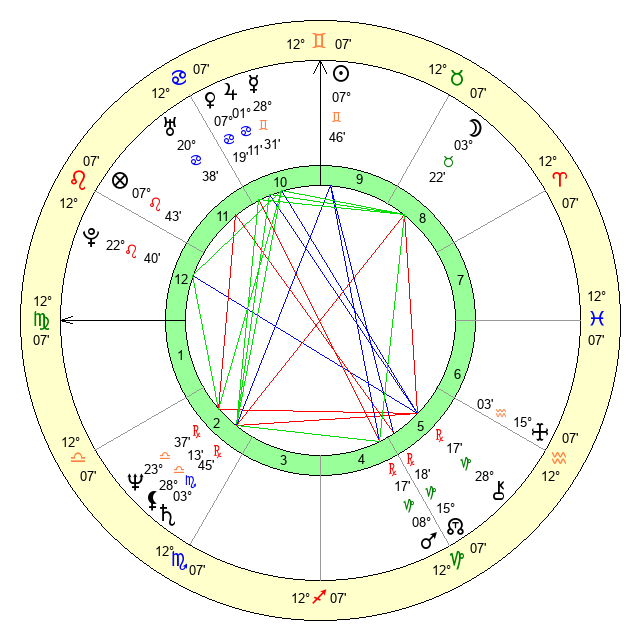 | Venus | 7 Cancer 19 | 22 Aries 45 | 29 Virgo 39 |