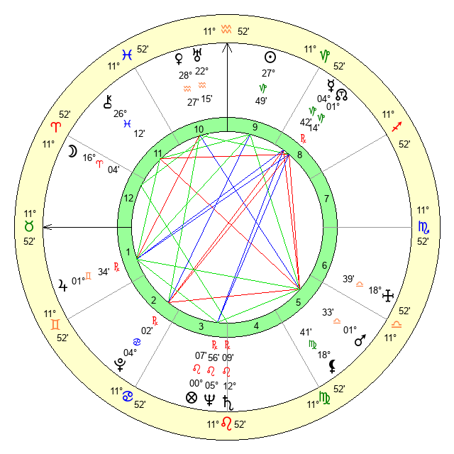 Uranus | 22 Aquarius 13 | 23 Taurus 20 | 27 Aquarius 21 |