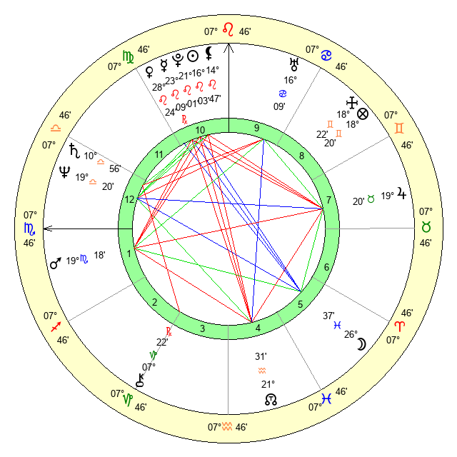 | Mercury | 23 Leo 10 | 4 Leo 37 | 13 Scorpio 55 |