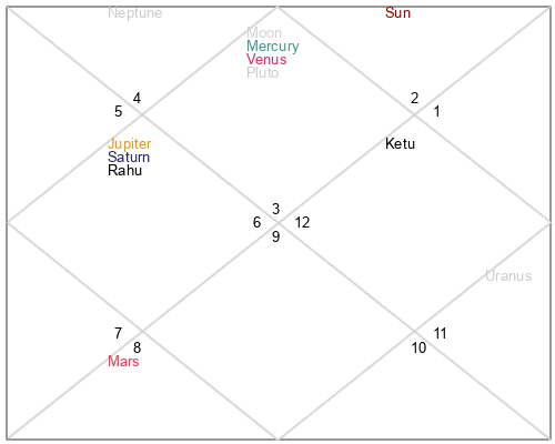 | Rahu | 5 Libra 50 | 23 Pisces 40 | 0 Libra 23 |