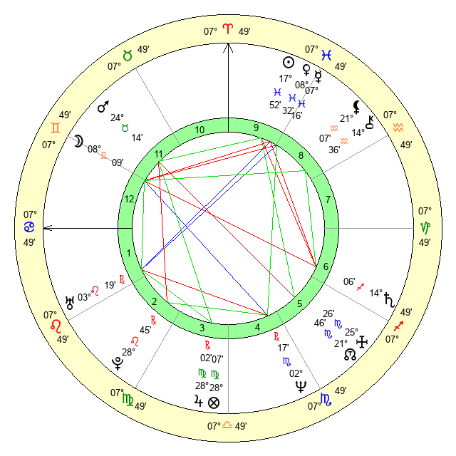 | Moon | 8 Gemini 12 | 13 Cancer 43 | 16 Sagittarius 21 |