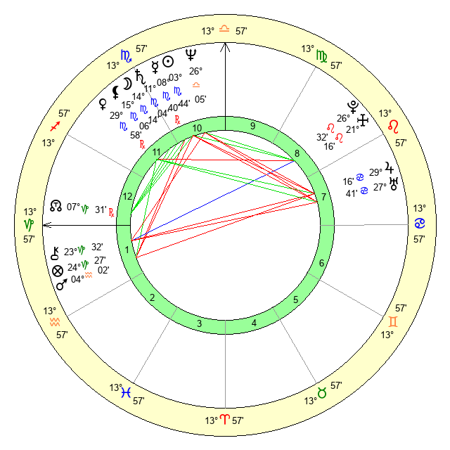 | Moon | 14 Scorpio 17 | 12 Capricorn 8 | 20 Gemini 58 |