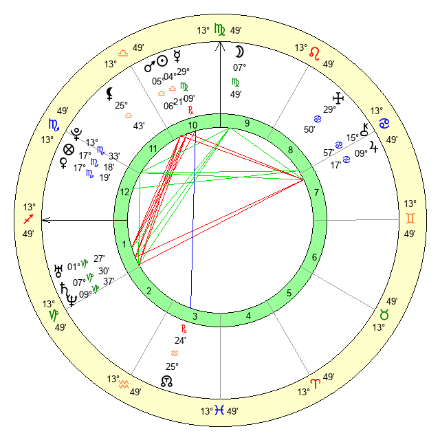 | Moon | 7 Virgo 43 | 7 Sagittarius 9 | 22 Sagittarius 32 |