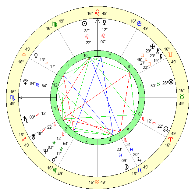 | Sun | 27 Leo 22 | 27 Leo 55 | 5 Libra 16 |
