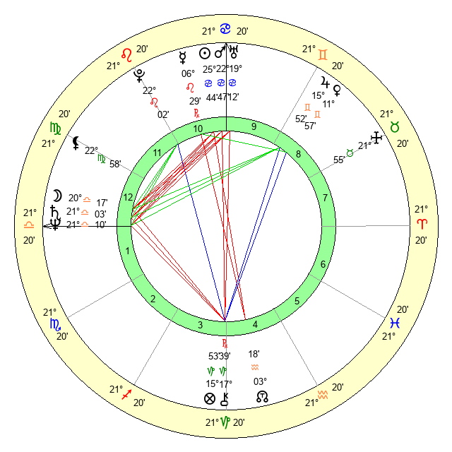 | Mars | 22 Cancer 48 | 18 Virgo 13 | 8 Virgo 48 |