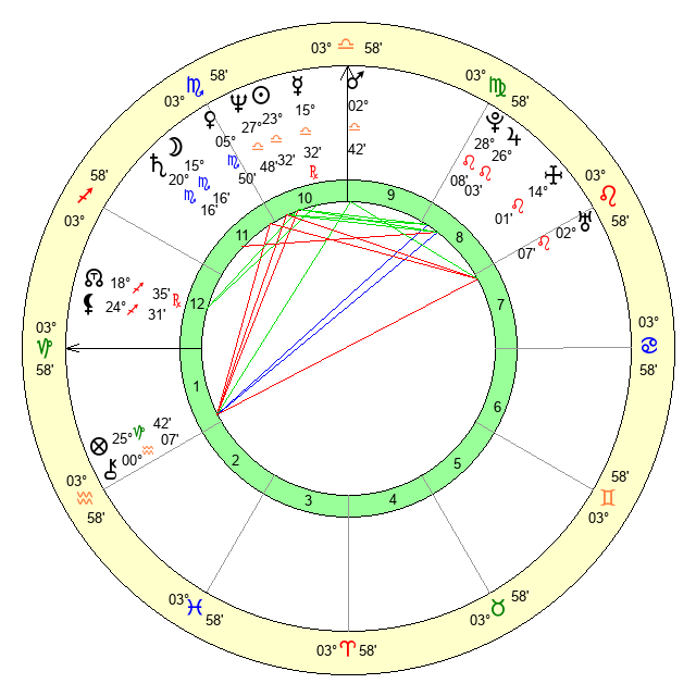 | Mars | 2 Libra 43 | 17 Scorpio 23 | 17 Scorpio 59 |