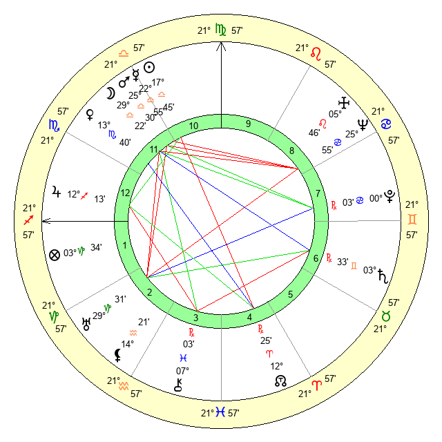 | Venus | 13 Scorpio 41 | 26 Virgo 59 | 28 Pisces 22 |