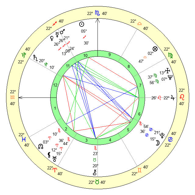 | Moon | 15 Cancer 36 | 11 Pisces 51 | 5 Capricorn 29 |