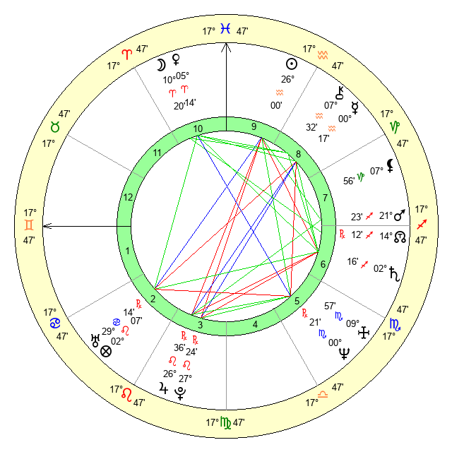 | Venus | 5 Aries 14 | 7 Aries 6 | 19 Gemini 33 |