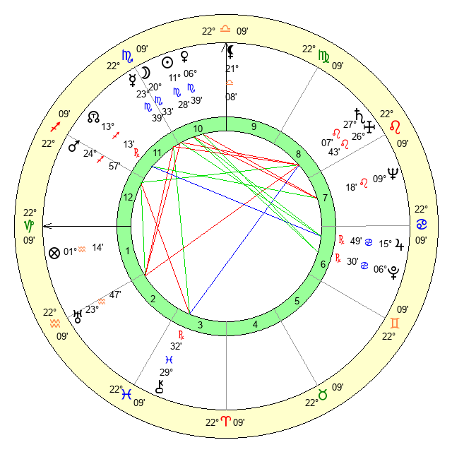 | Venus | 6 Scorpio 39 | 27 Libra 12 | 20 Pisces 52 |