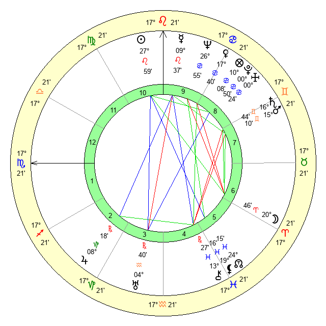 | Mercury | 9 Leo 38 | 10 Leo 35 | 28 Scorpio 10 |