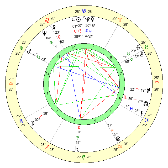 | Venus | 18 Cancer 25 | 22 Gemini 34 | 15 Scorpio 3 |