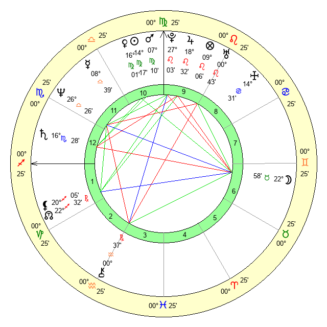 | Sun | 14 Virgo 17 | 15 Virgo 19 | 23 Scorpio 33 |