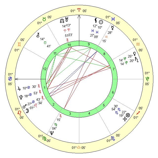 | Neptune | 4 Virgo 15 | 28 Pisces 55 | 3 Virgo 6 |