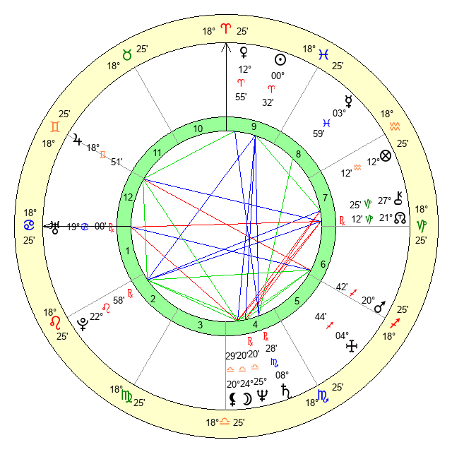 | Moon | 24 Libra 17 | 22 Sagittarius 20 | 3 Gemini 17 |