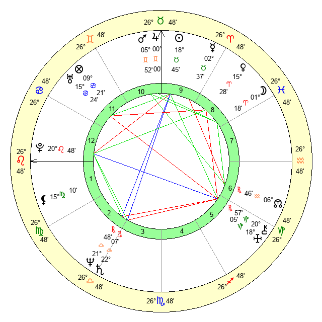 | Mars | 5 Gemini 53 | 9 Leo 42 | 24 Cancer 6 |