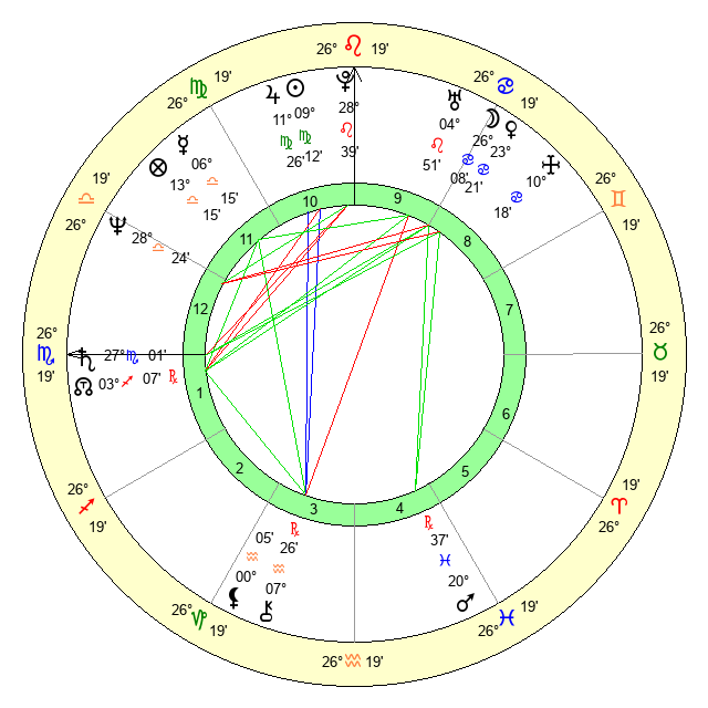| Saturn | 27 Scorpio 29 | 29 Pisces 51 | 3 Sagittarius 39 |