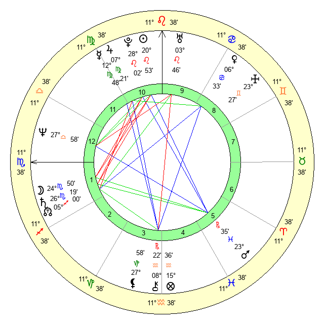 | Mercury | 12 Virgo 48 | 4 Leo 35 | 14 Libra 1 |