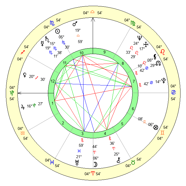 | Saturn | 16 Scorpio 7 | 25 Pisces 48 | 25 Scorpio 54 |