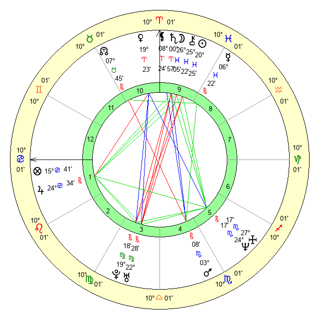 | Venus | 19 Aries 24 | 8 Aries 54 | 28 Gemini 15 |