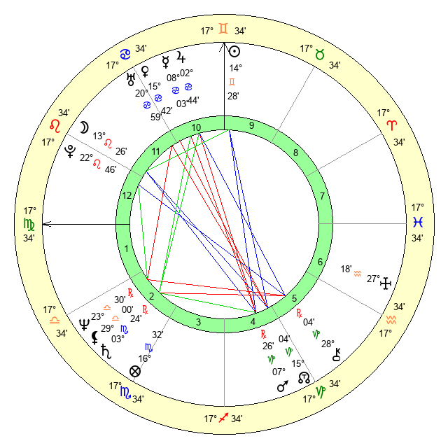 | Sun | 14 Gemini 29 | 15 Gemini 17 | 22 Leo 19 |
