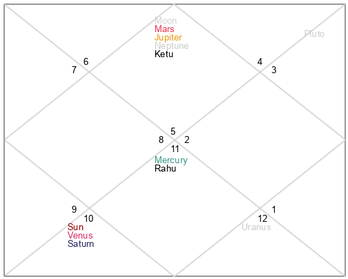 | Rahu | 8 Pisces 44 | 29 Pisces 20 | 3 Pisces 52 |
