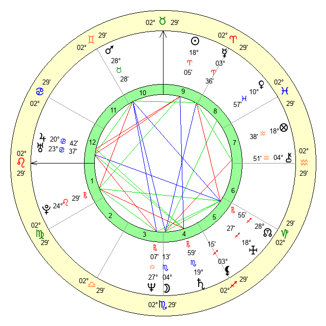 | Moon | 4 Scorpio 7 | 1 Virgo 40 | 20 Taurus 52 |