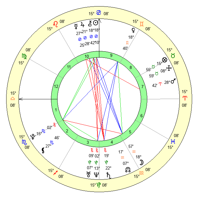 | Mercury | 27 Cancer 26 | 13 Leo 24 | 18 Virgo 46 |