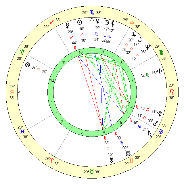 | Moon | 17 Scorpio 54 | 8 Taurus 43 | 24 Libra 24 |