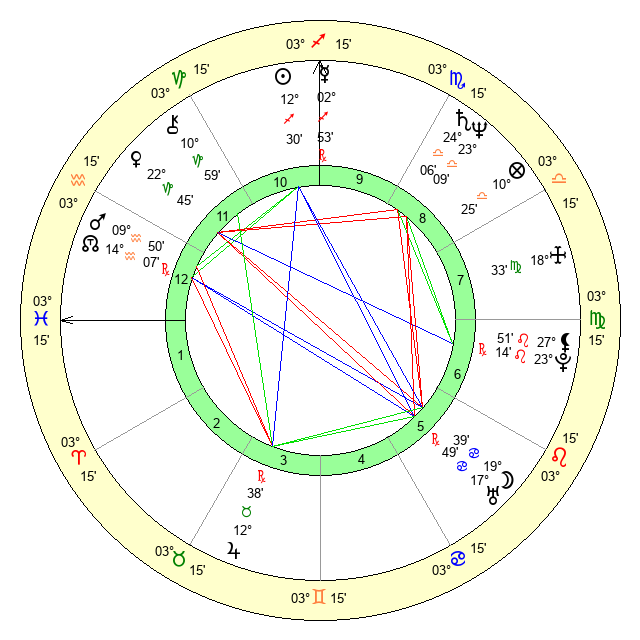 | Mars | 9 Aquarius 50 | 22 Sagittarius 3 | 5 Aries 48 |