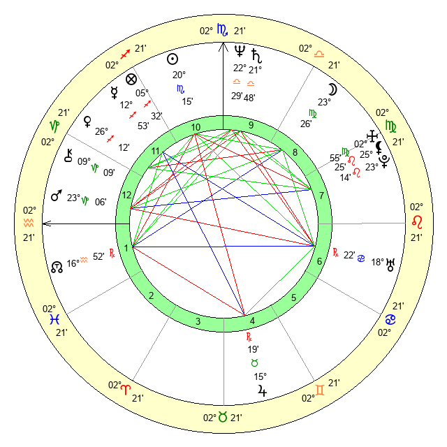 | Saturn | 22 Libra 17 | 25 Pisces 16 | 27 Libra 42 |
