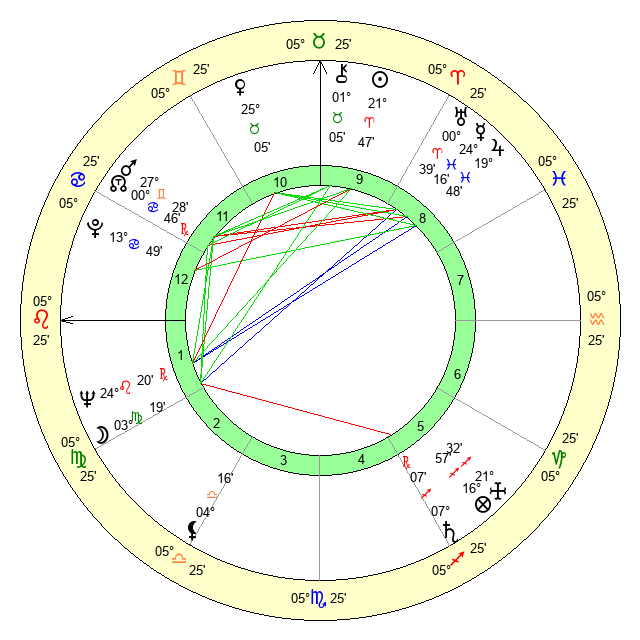 | Neptune | 24 Leo 20 | 0 Aries 29 | 25 Leo 35 |