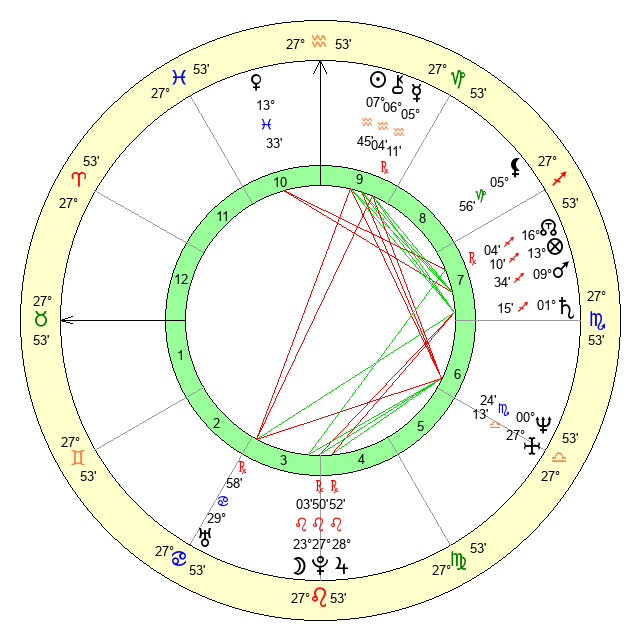 | Neptune | 0 Scorpio 25 | 27 Pisces 52 | 29 Libra 23 |