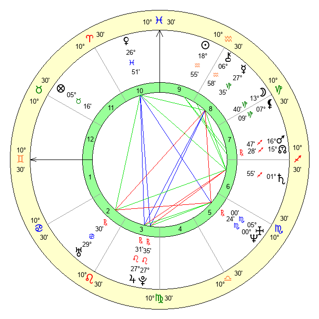 | Neptune | 0 Scorpio 24 | 28 Pisces 12 | 29 Libra 5 |