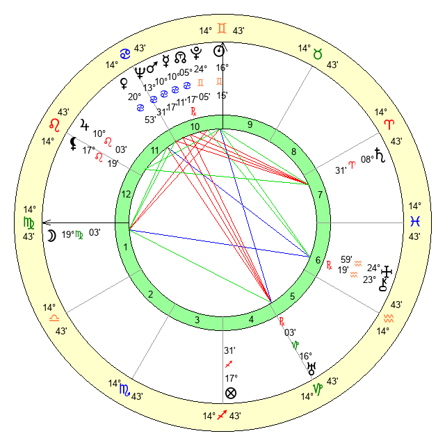 | Moon | 18 Virgo 55 | 4 Scorpio 12 | 28 Sagittarius 45 |