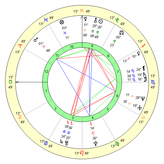 | Moon | 16 Scorpio 11 | 12 Virgo 30 | 9 Gemini 11 |