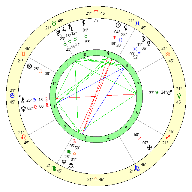 | Moon | 10 Pisces 52 | 14 Aquarius 24 | 7 Aries 46 |