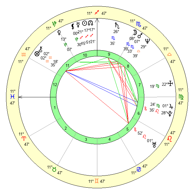 | Saturn | 27 Scorpio 1 | 25 Pisces 12 | 2 Sagittarius 50 |