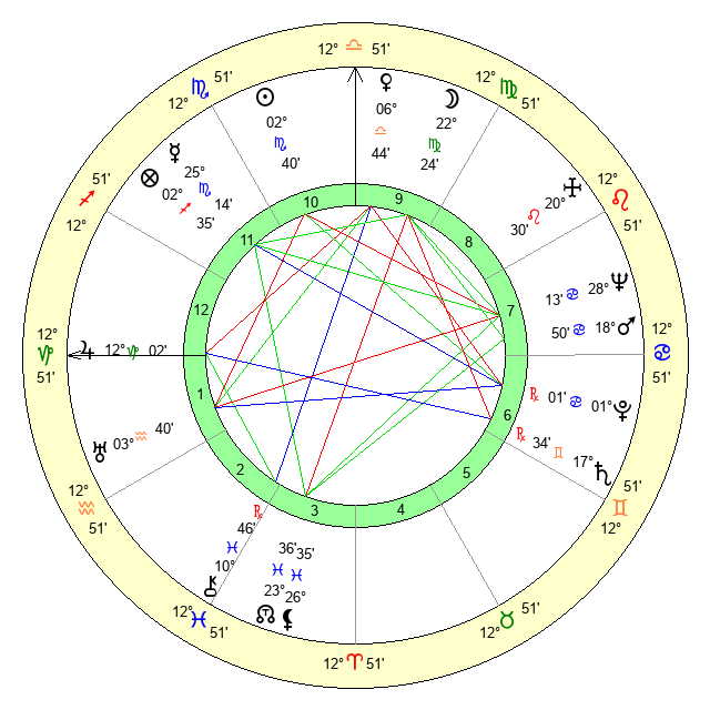 | Moon | 22 Virgo 29 | 0 Capricorn 6 | 4 Scorpio 6 |