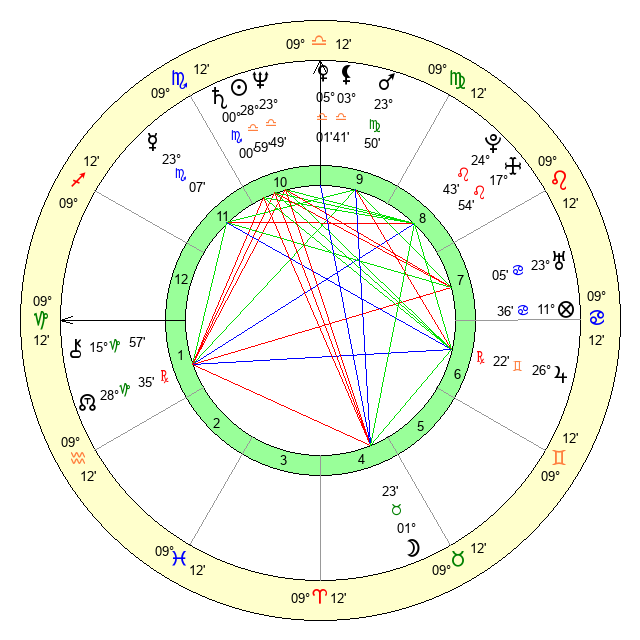 | Mars | 23 Virgo 51 | 20 Scorpio 53 | 7 Scorpio 56 |