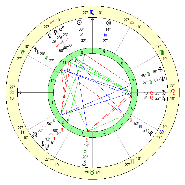 | Neptune | 7 Virgo 58 | 29 Pisces 23 | 6 Virgo 24 |