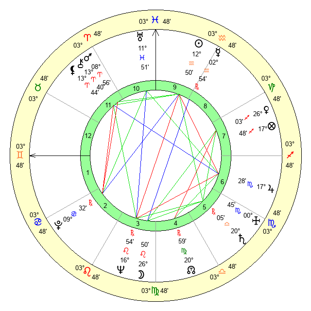 | Sun | 12 Aquarius 50 | 14 Aquarius 6 | 23 Taurus 50 |