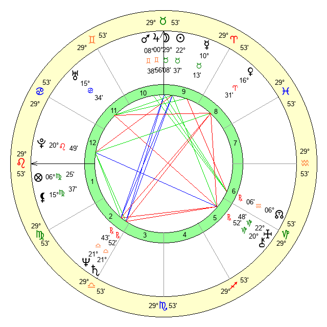 | Mars | 8 Gemini 39 | 11 Leo 39 | 26 Cancer 42 |